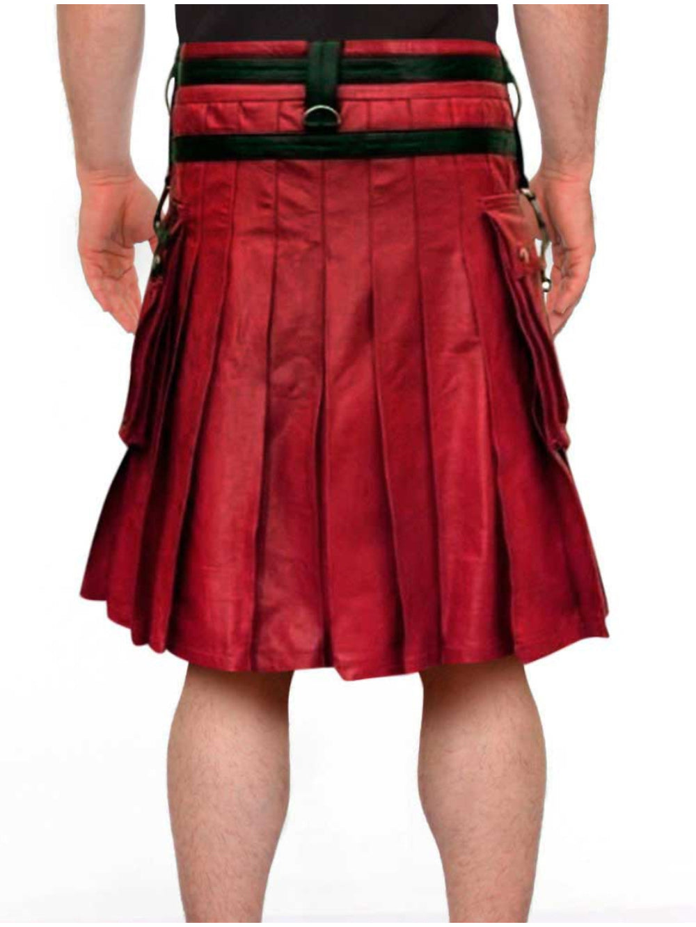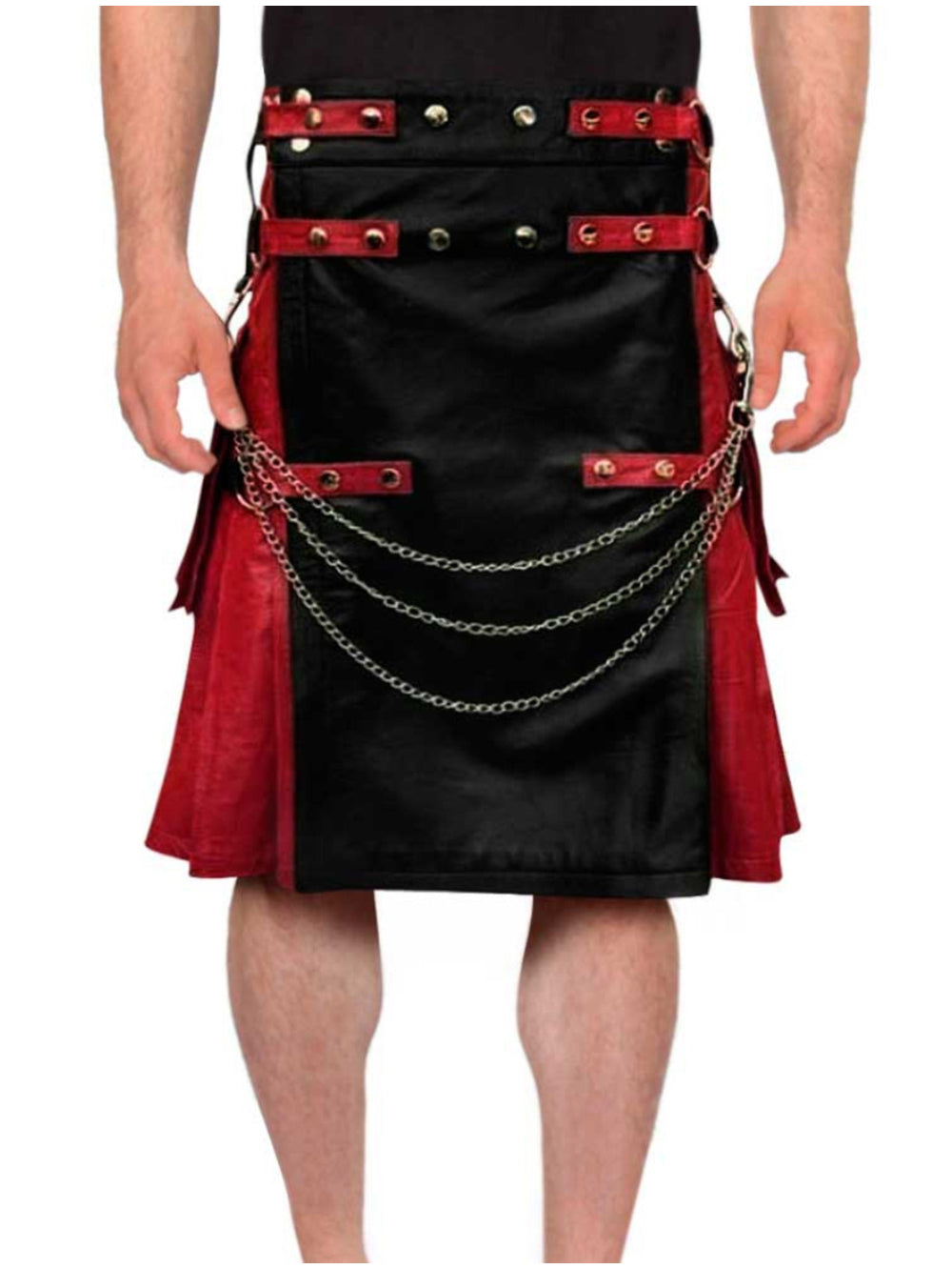 Expertly crafted with genuine leather, this Black & Red Chain Studded Leather Kilt for Men offers a unique and edgy twist on traditional kilts. The bold black and red color scheme is accentuated by eye-catching chain studs, making it perfect for those looking to stand out in style.