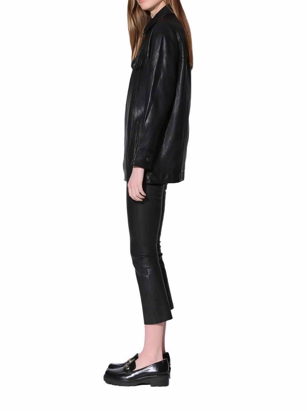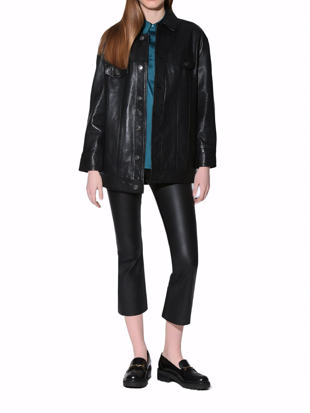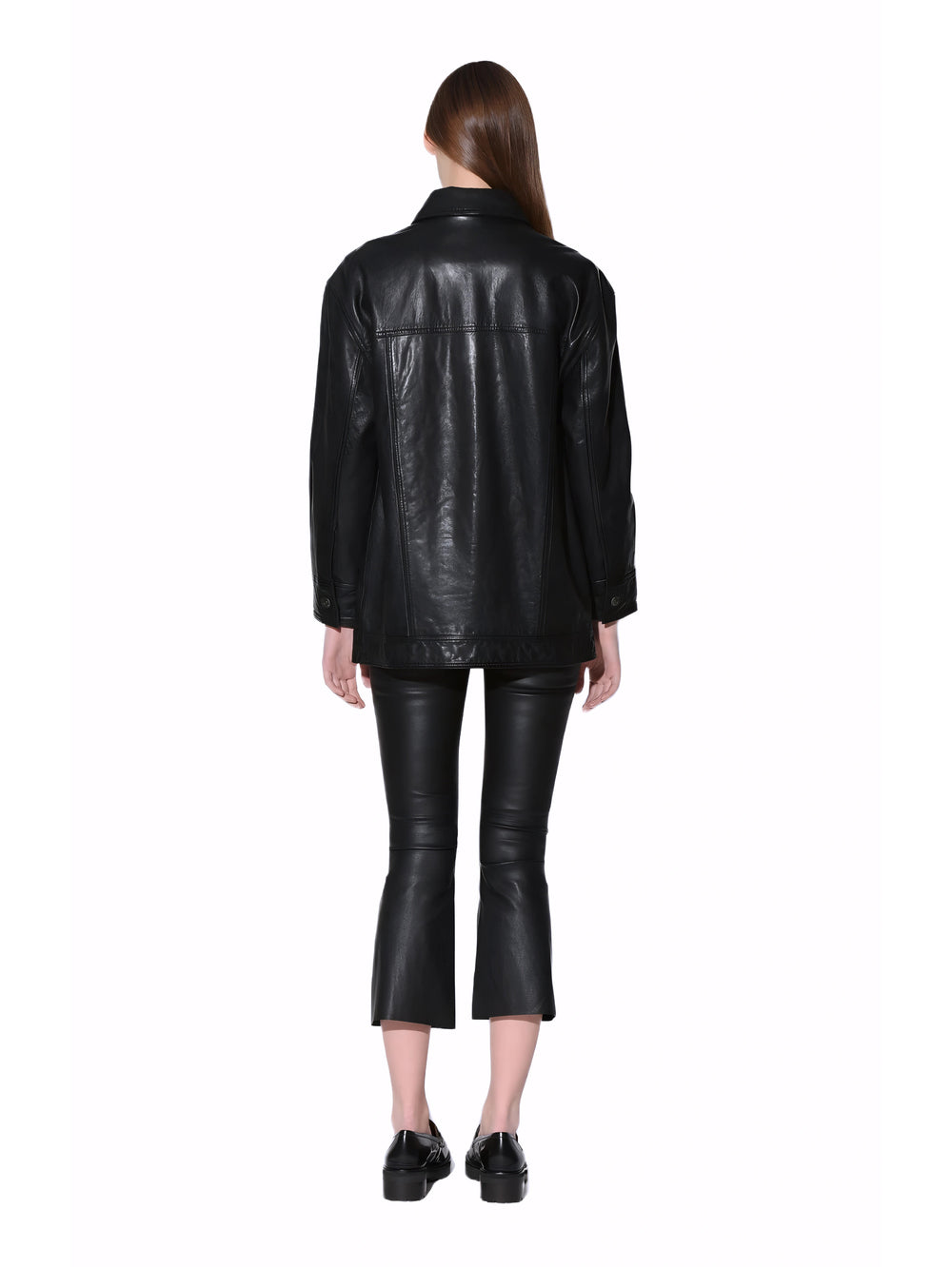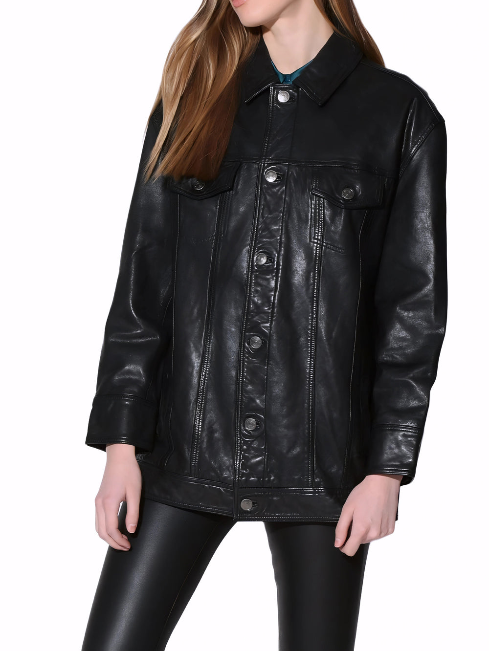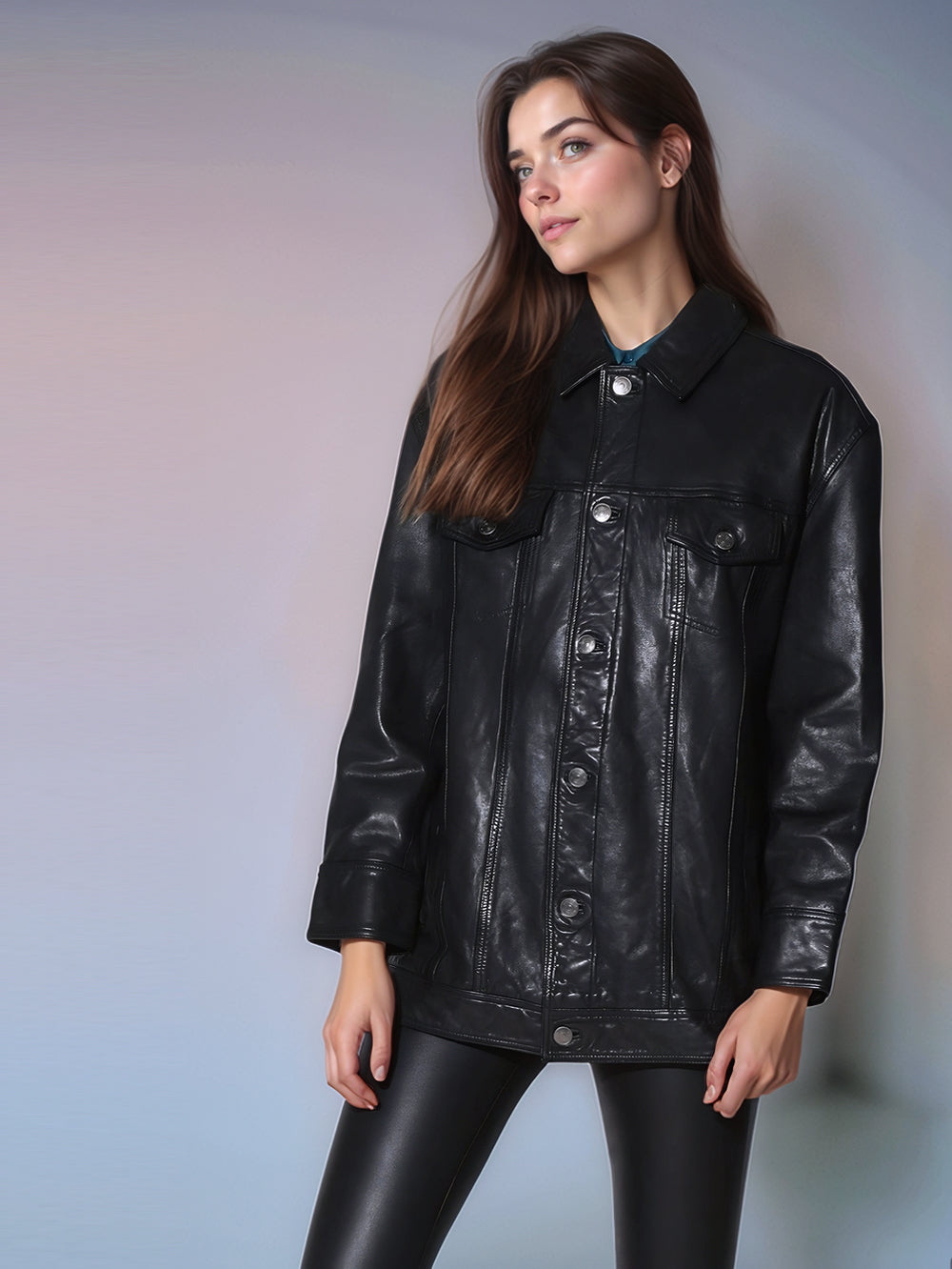 Introducing the Amethyst Glow Luxe Jacket - a stunning leather jacket featuring a unique amethyst glow. This luxurious jacket will elevate any outfit, while providing the perfect blend of style and functionality. Made with high-quality materials, this jacket is a must-have for any fashion-forward individual.