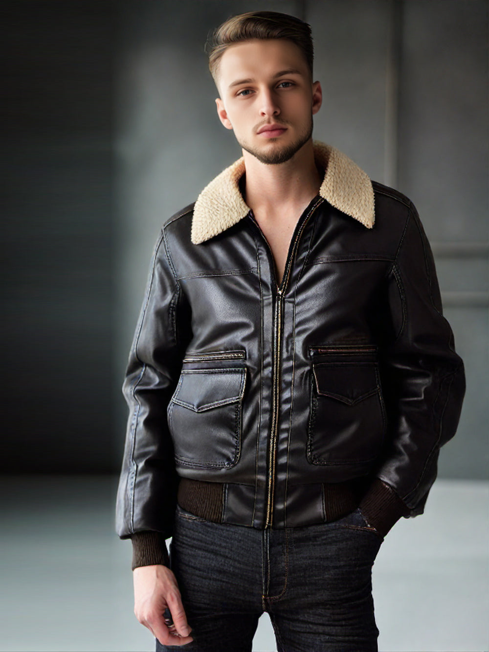Bomberjacke aus Leder mit Fronttasche für Herren