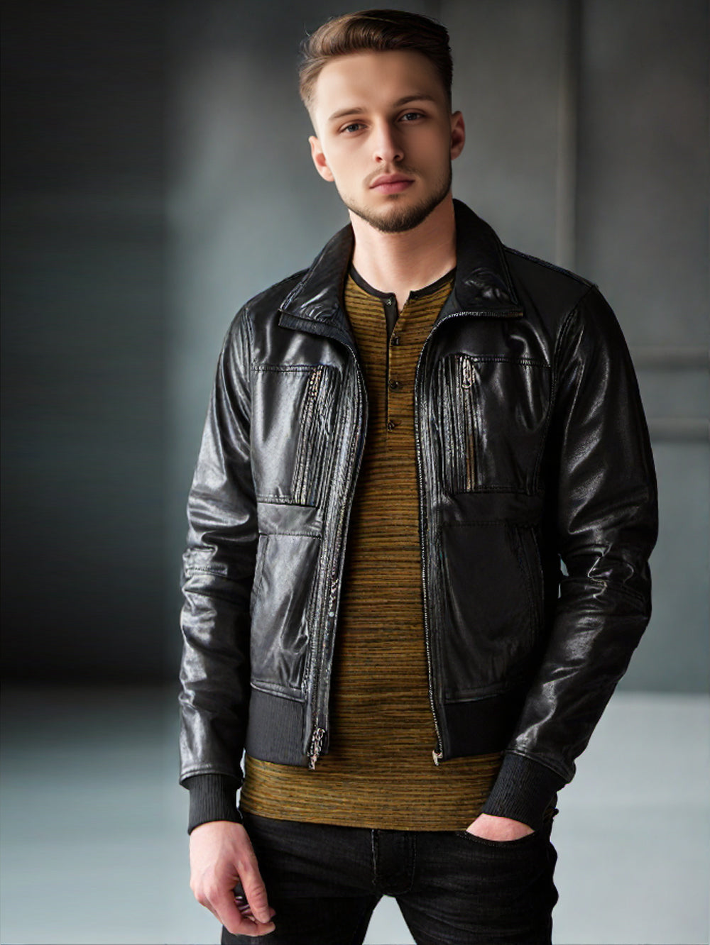 Lederbomberjacke mit Reißverschluss und Brusttasche für Herren