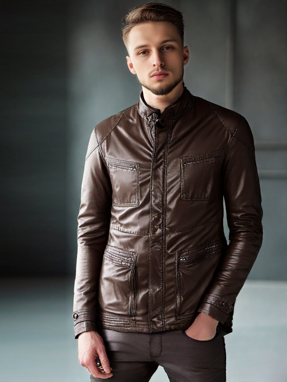 Urbane Lederjacke mit starrem Kragen