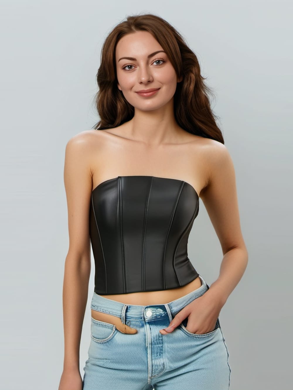 Gebogenes Kontur-Lederkorsett für Damen