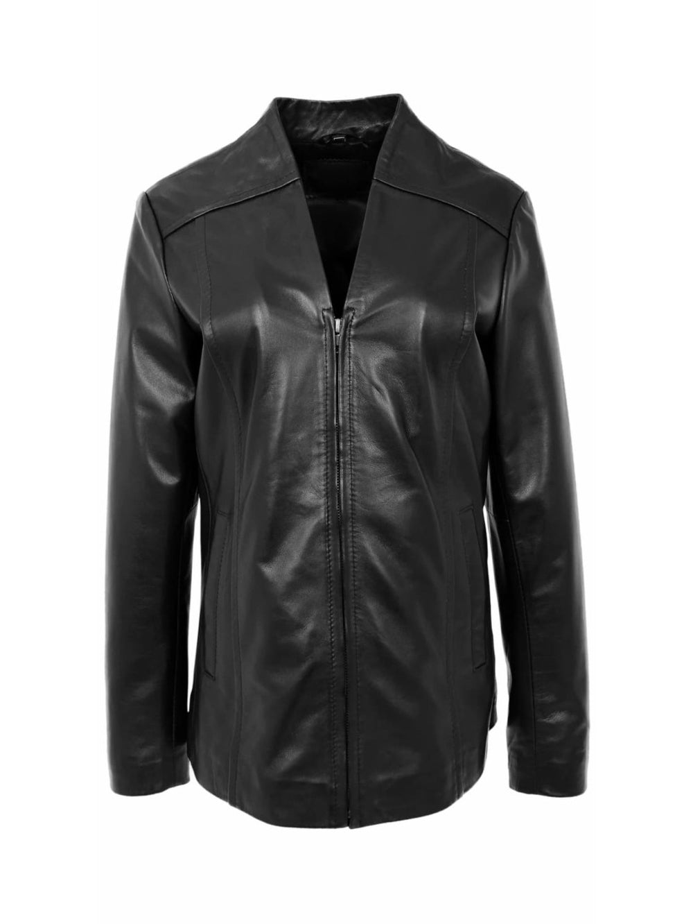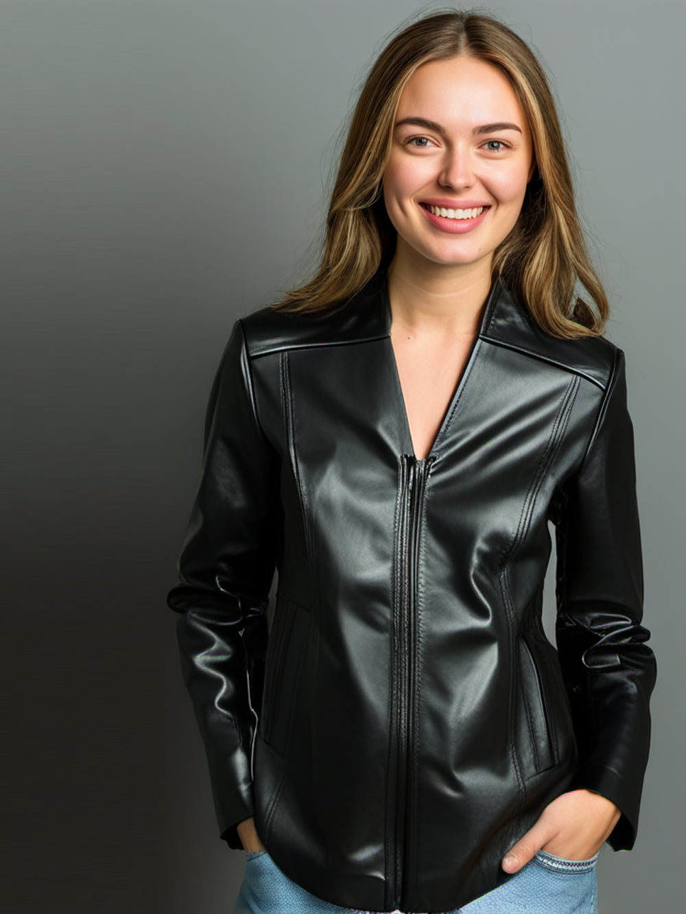 Klassische Lederjacke mit V-Ausschnitt