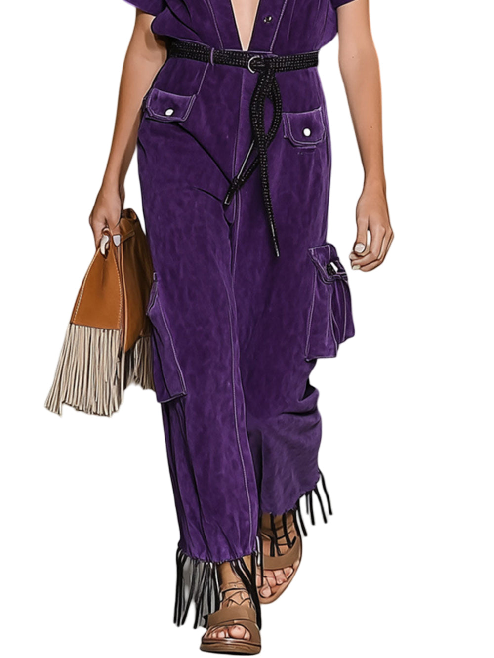 Ember Celeste – Jumpsuit aus Wildleder mit weitem Bein