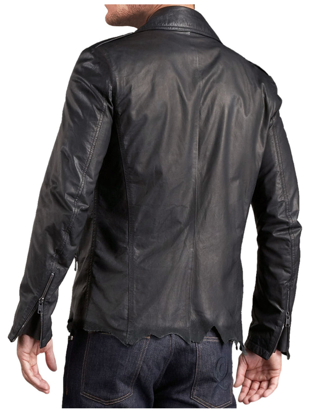Veste de motard en cuir véritable à ourlet irrégulier pour homme