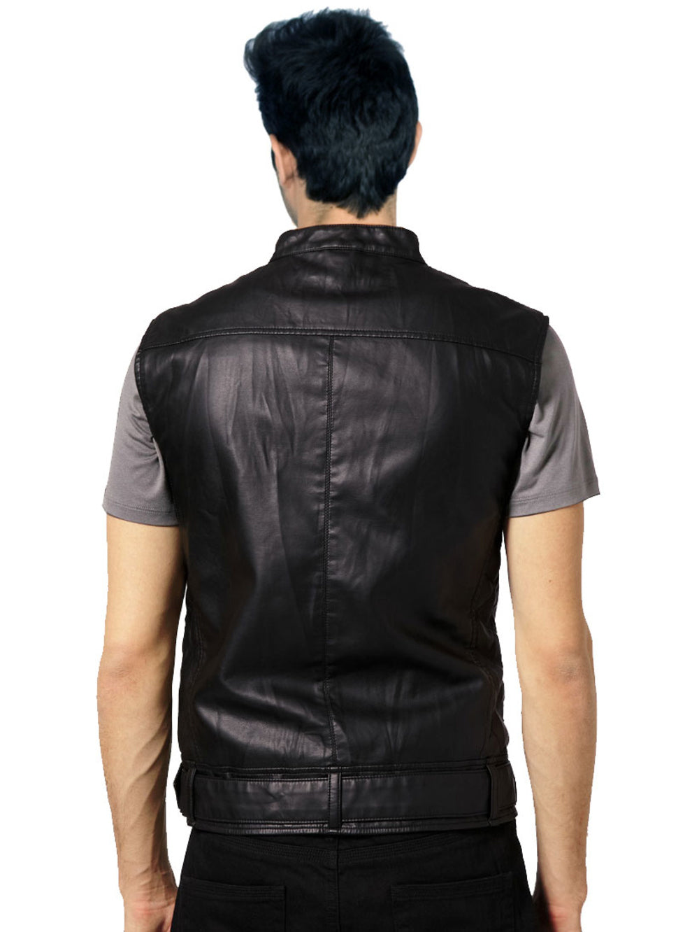 Veste de motard sans manches en cuir véritable pour homme