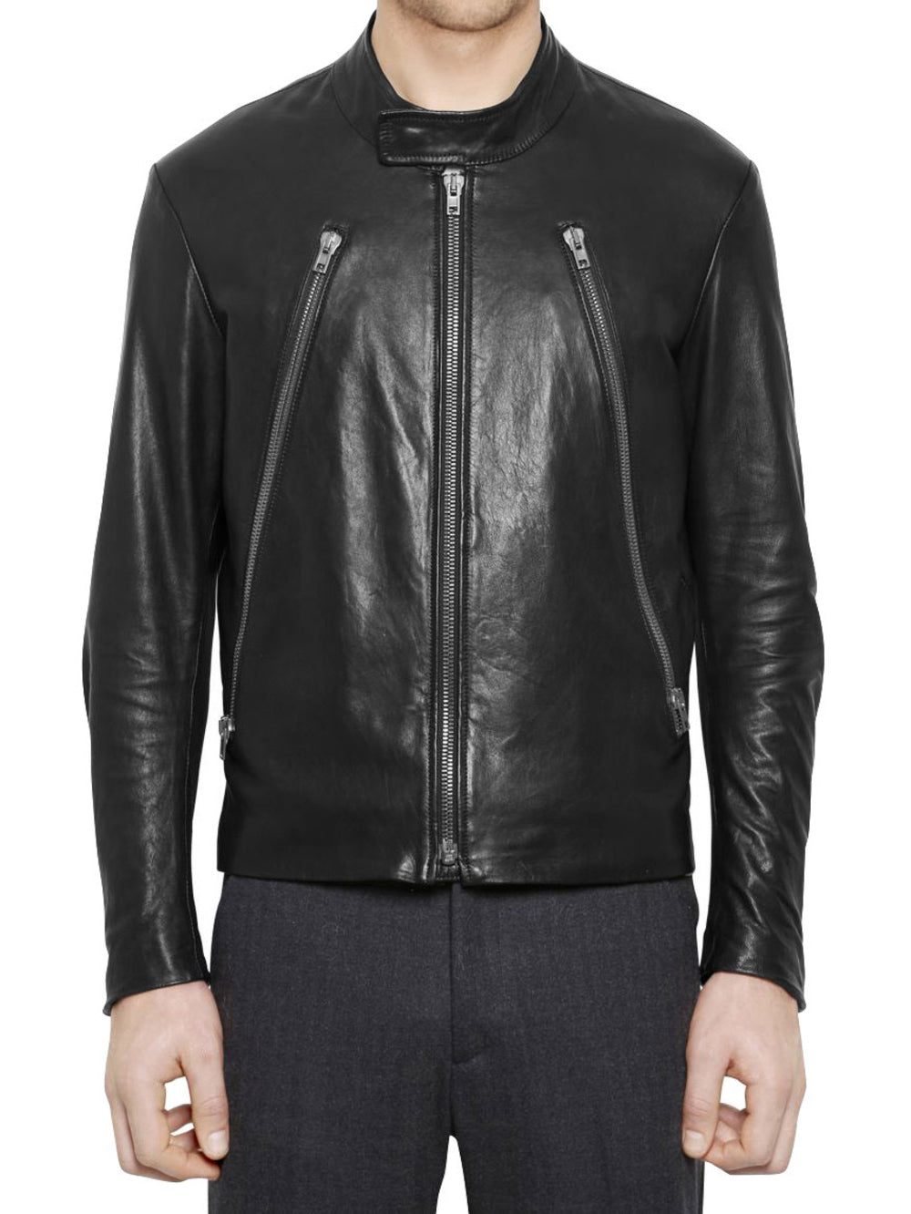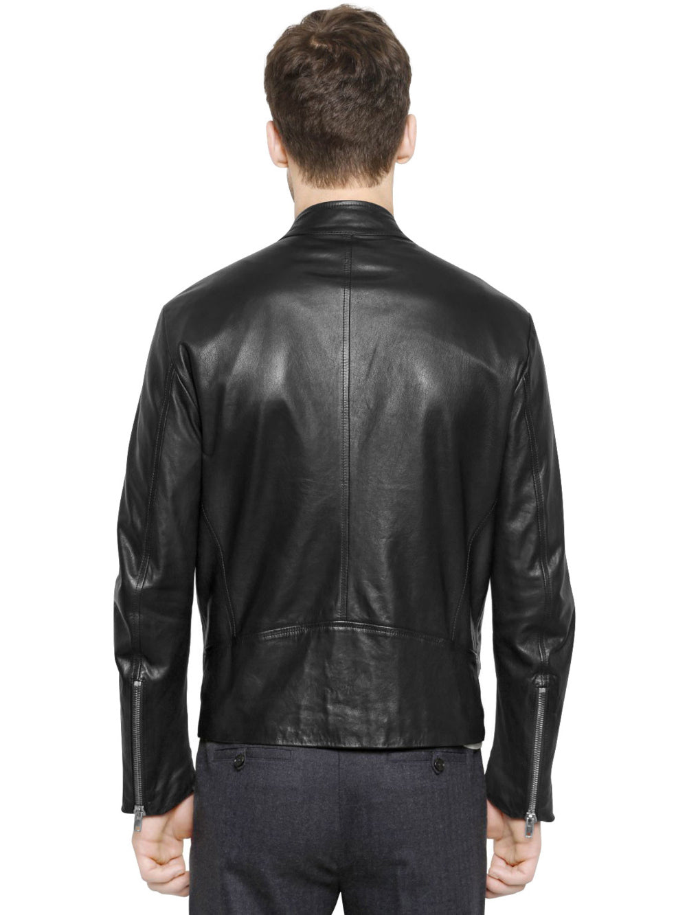 Veste en cuir à col à boutons-pression