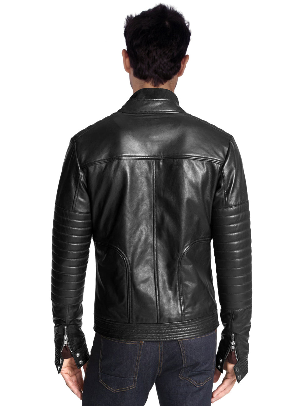 Veste de motard en cuir véritable avec détails cousus pour homme