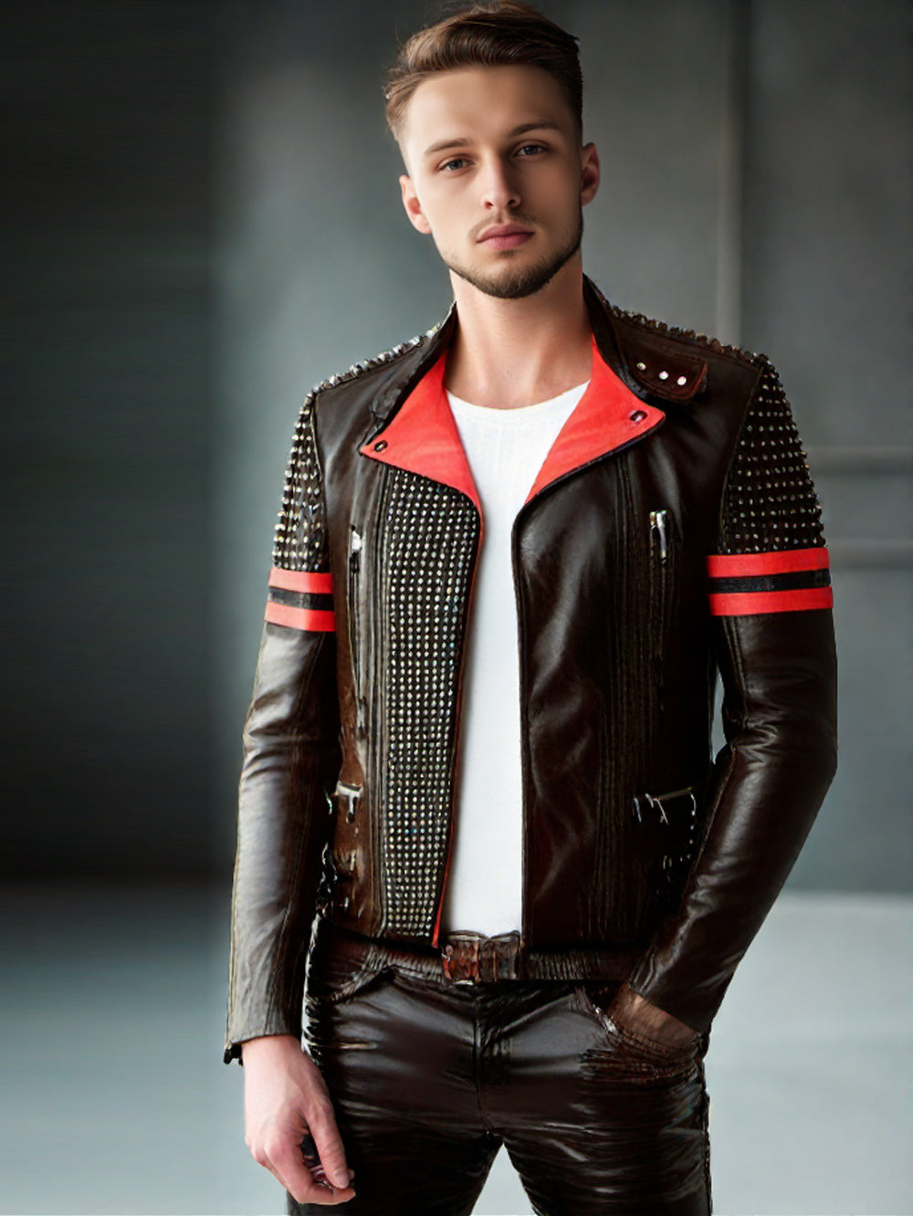 Restez élégant et protégé avec notre veste de motard en cuir véritable noir et rouge clouté pour homme. Fabriquée en cuir de haute qualité et ornée de superbes clous, cette veste allie une esthétique avant-gardiste à une durabilité et une protection optimales. Sublimez votre look motard avec cet incontournable de votre garde-robe.