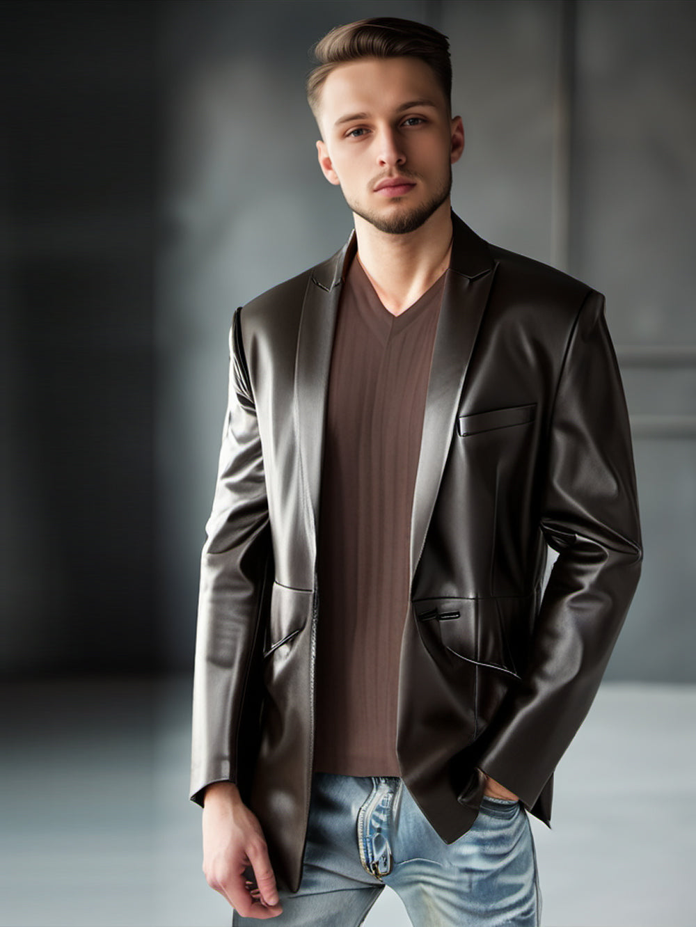 Conçu avec expertise pour homme, le blazer en cuir satiné apporte une touche de sophistication à toutes vos tenues. Sa luxueuse finition satinée sublime ce blazer en cuir classique, le rendant polyvalent pour les occasions formelles comme décontractées. Restez élégant et confortable avec cette pièce incontournable de votre garde-robe.