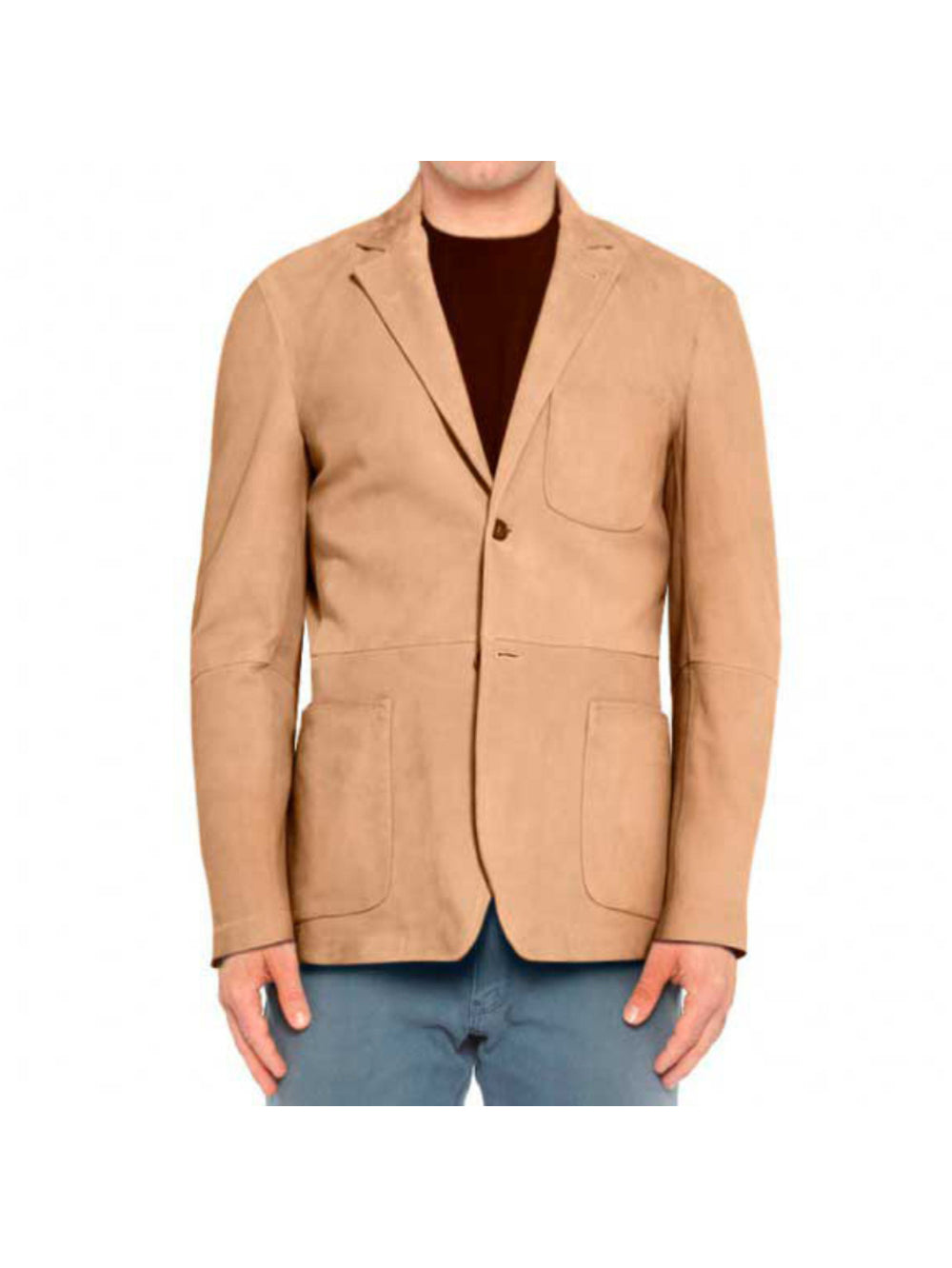 Blazer en cuir à deux boutons et poches plaquées en daim pour homme