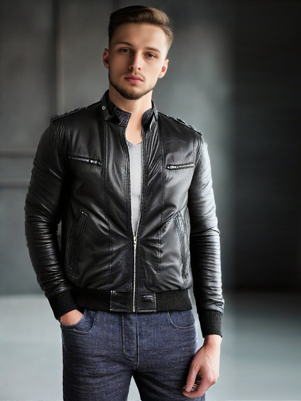 Élégant blouson aviateur zippé en cuir d'agneau pour homme