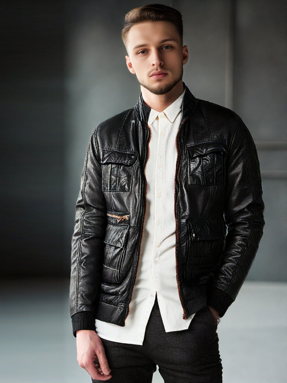 Blouson aviateur en cuir fonctionnel et tendance pour homme