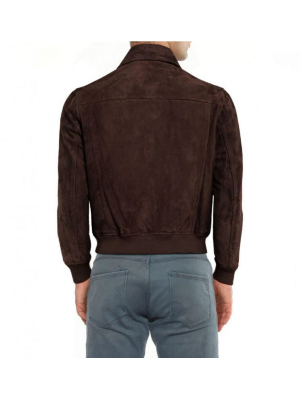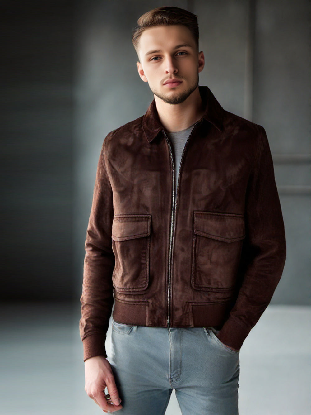 Bomber en cuir suédé marron avec poches plaquées pour homme