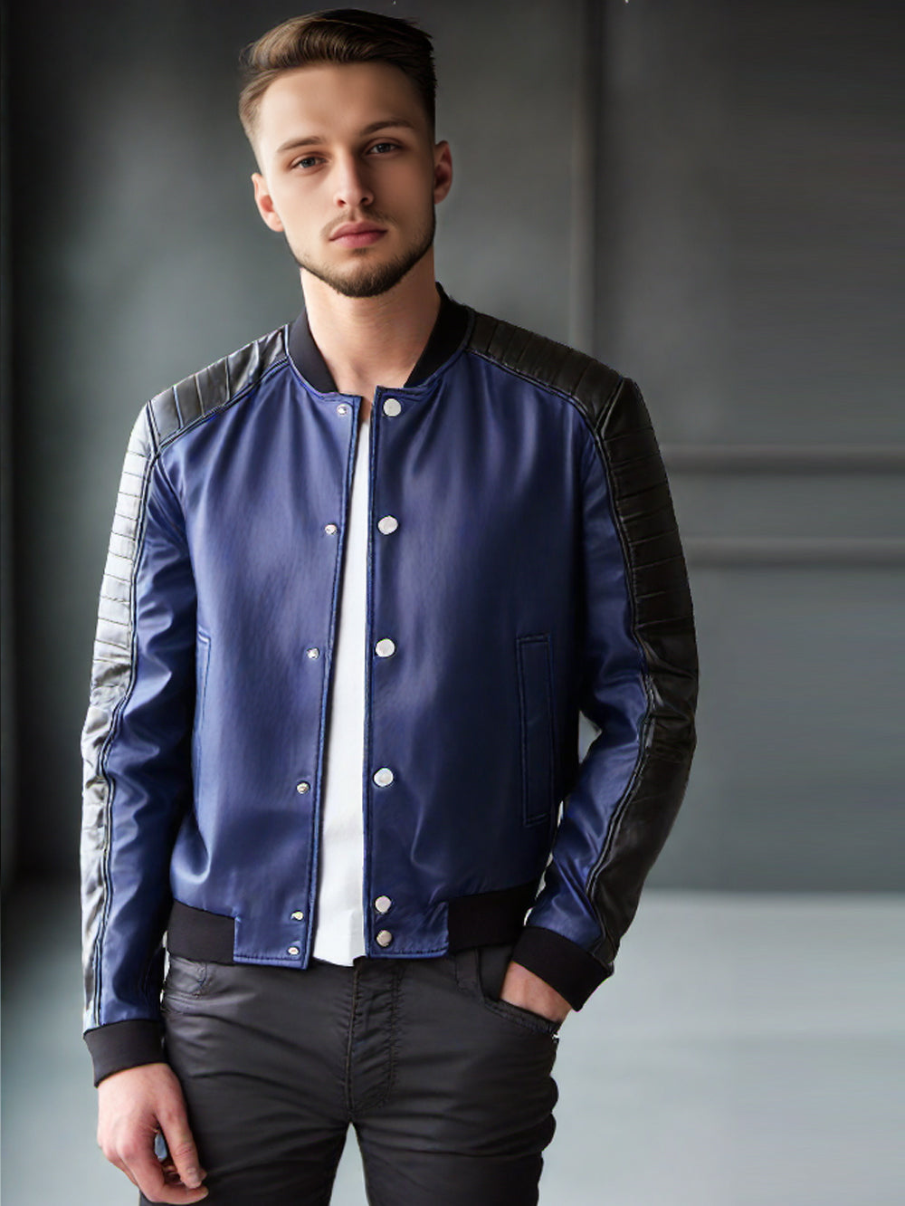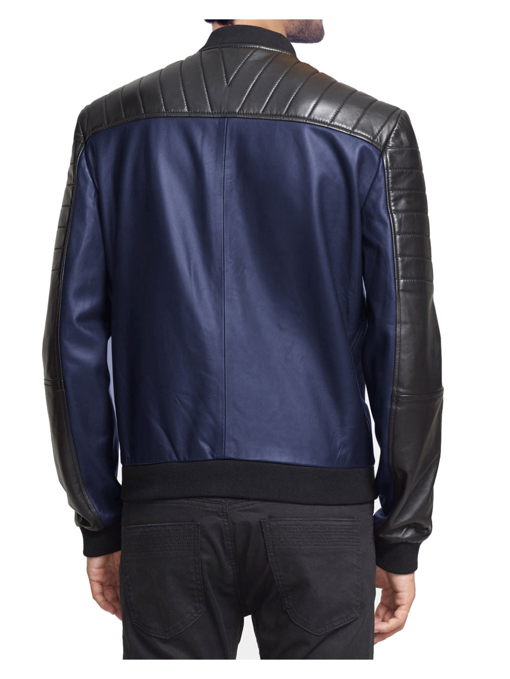 Bomber en cuir matelassé à empiècements aux épaules pour homme