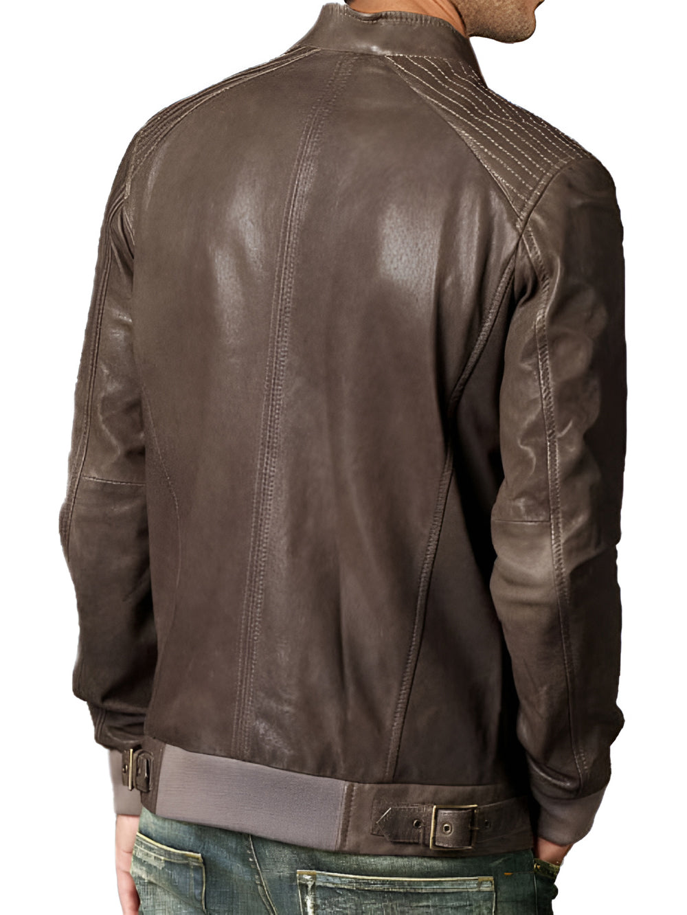 Bomber en cuir à coutures ton sur ton pour homme