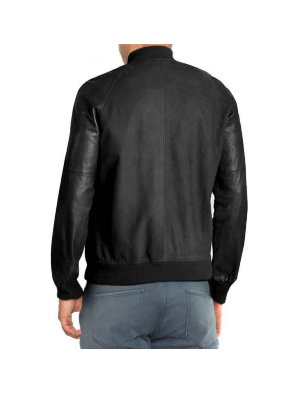 Blouson aviateur en cuir suédé à fermeture éclair bidirectionnelle pour homme