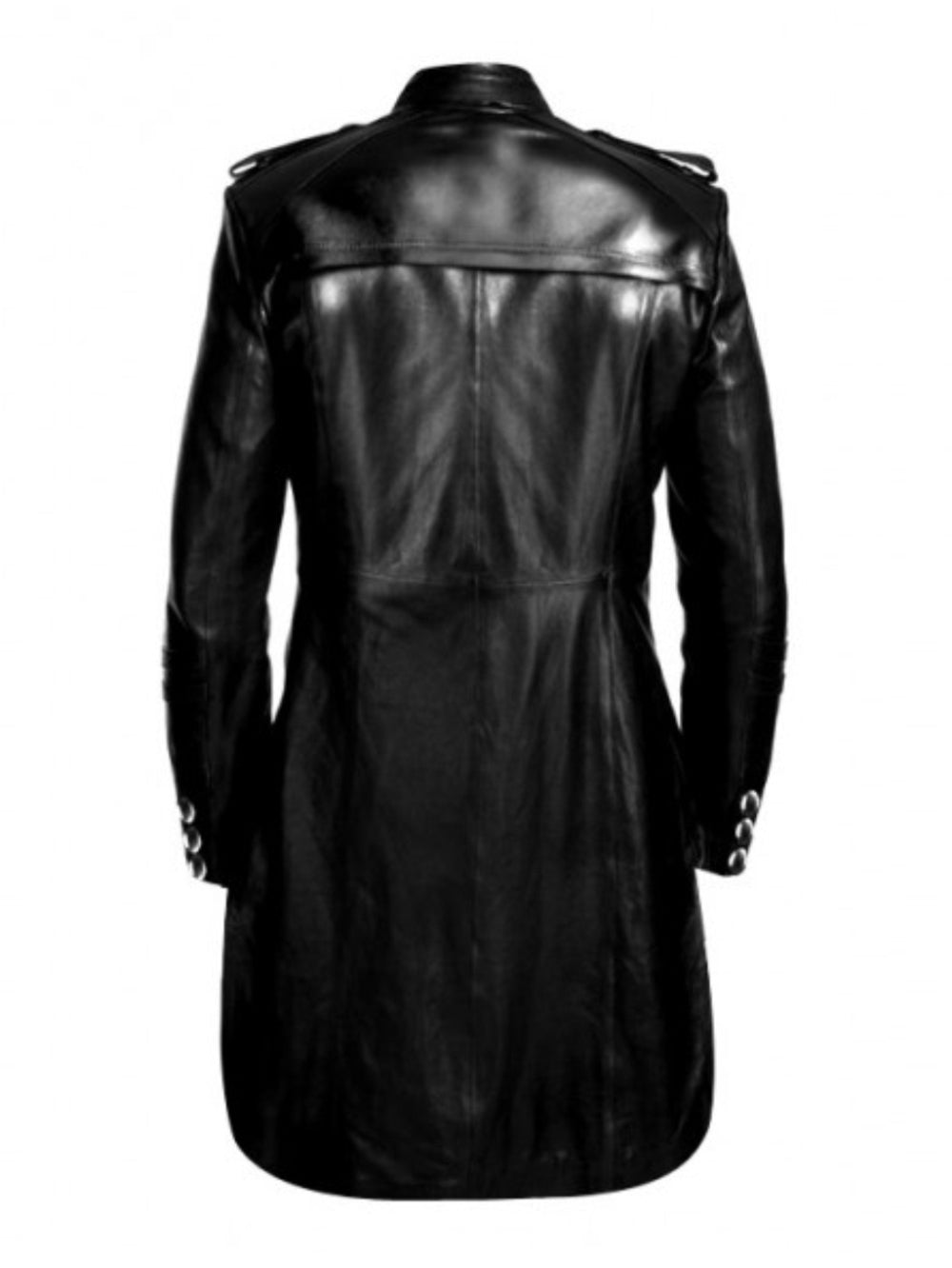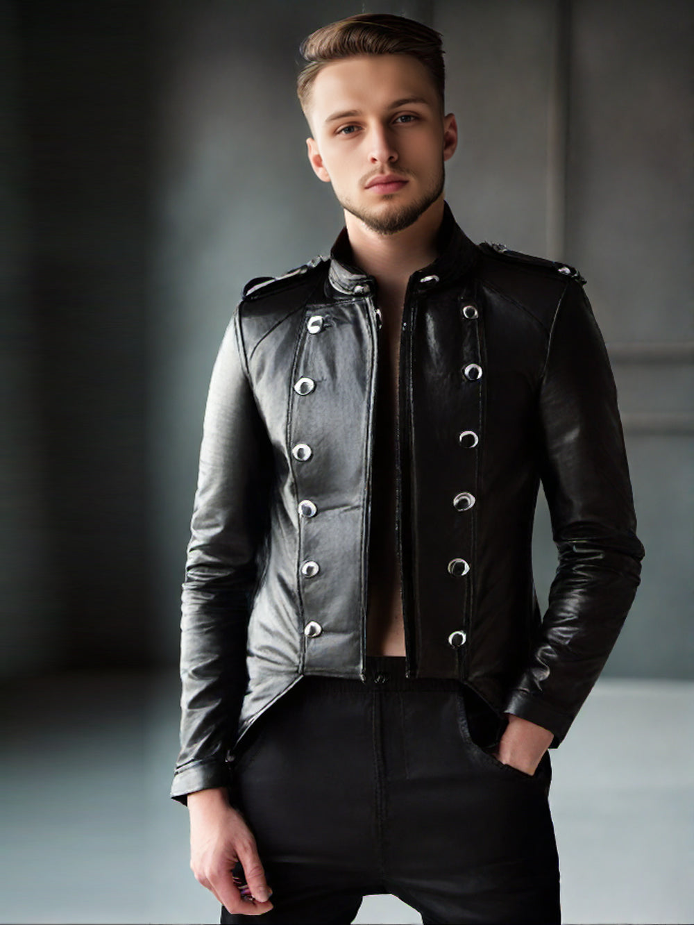 Queue-de-pie militaire noire en cuir avec fermeture éclair pour homme