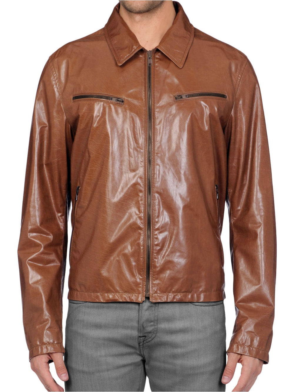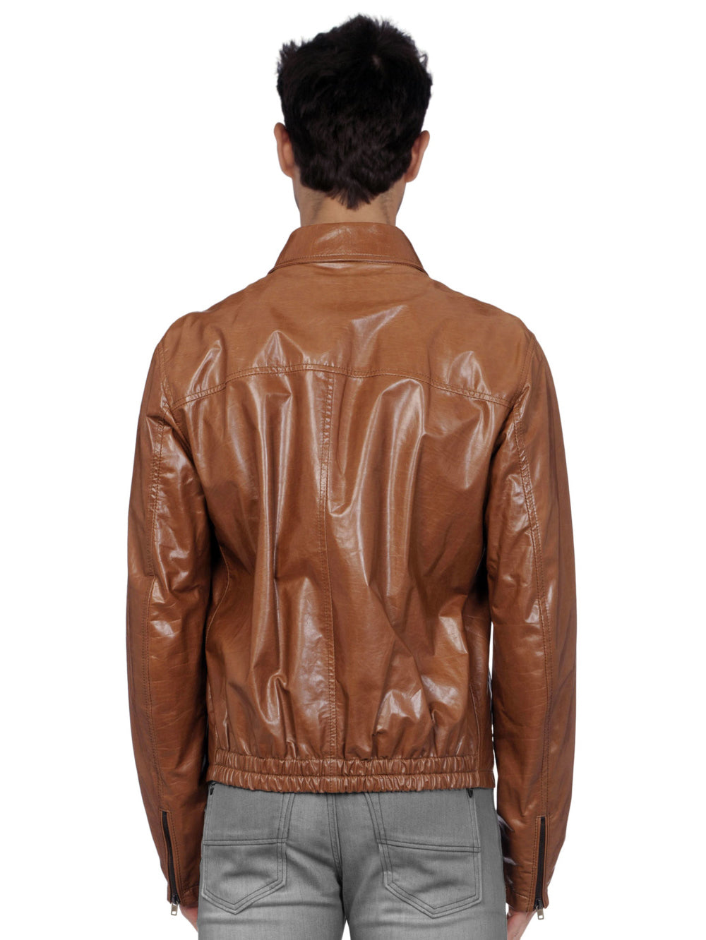 Veste de sport en cuir à ourlet élastique