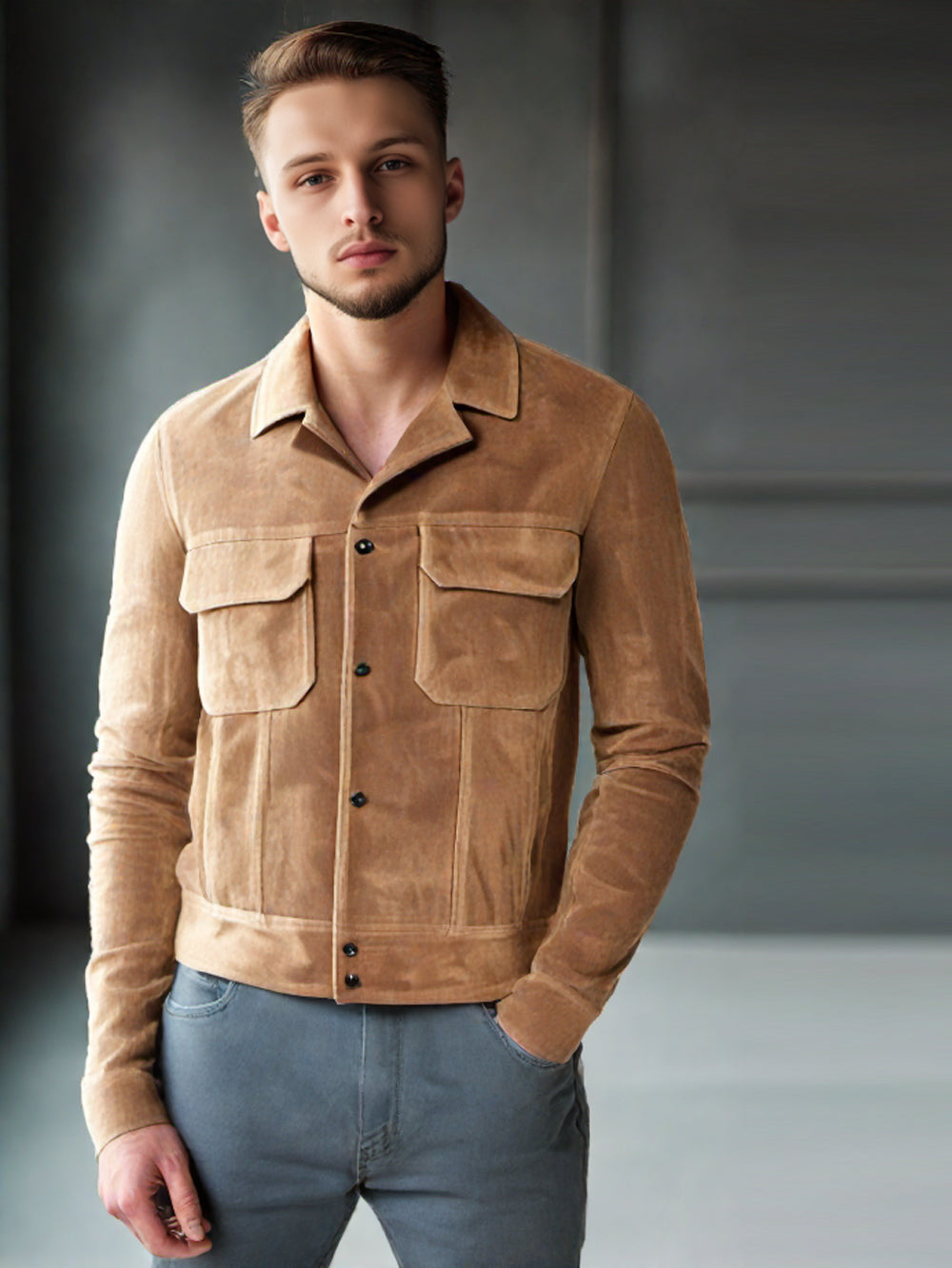 Veste décontractée en cuir suédé à revers crantés