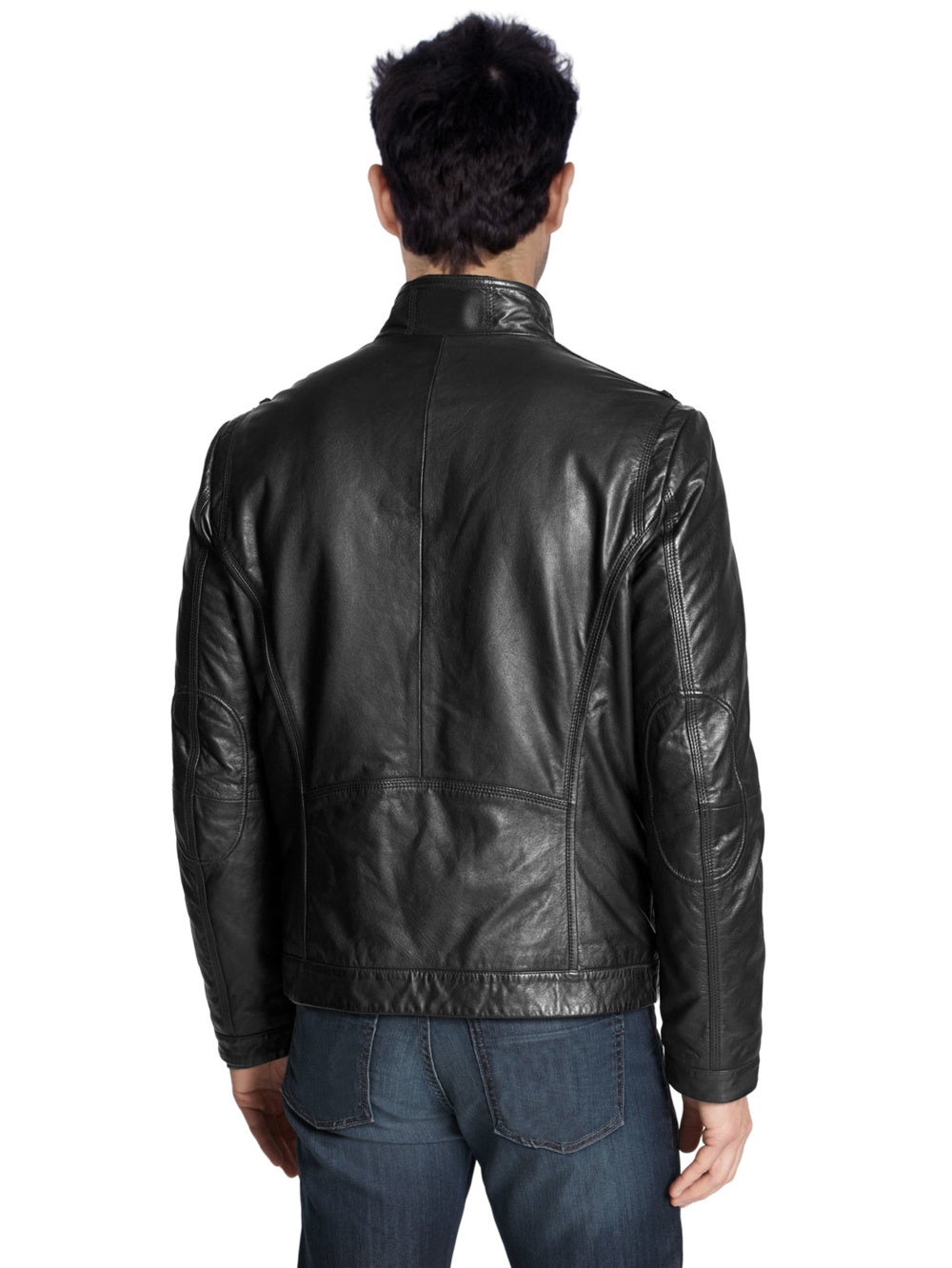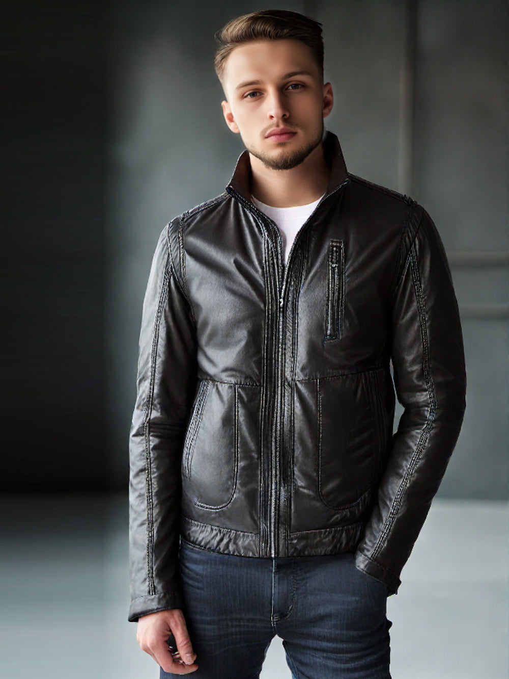 Veste en cuir à col montant robuste