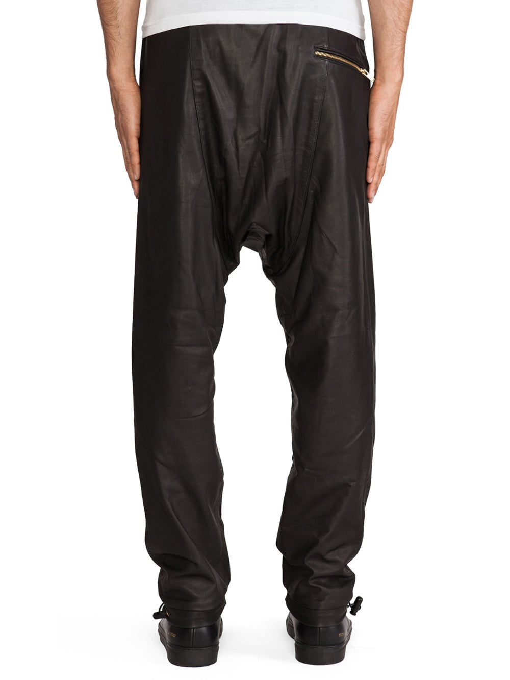 Pantalon en cuir véritable à entrejambe bas et ourlet à bascule pour homme