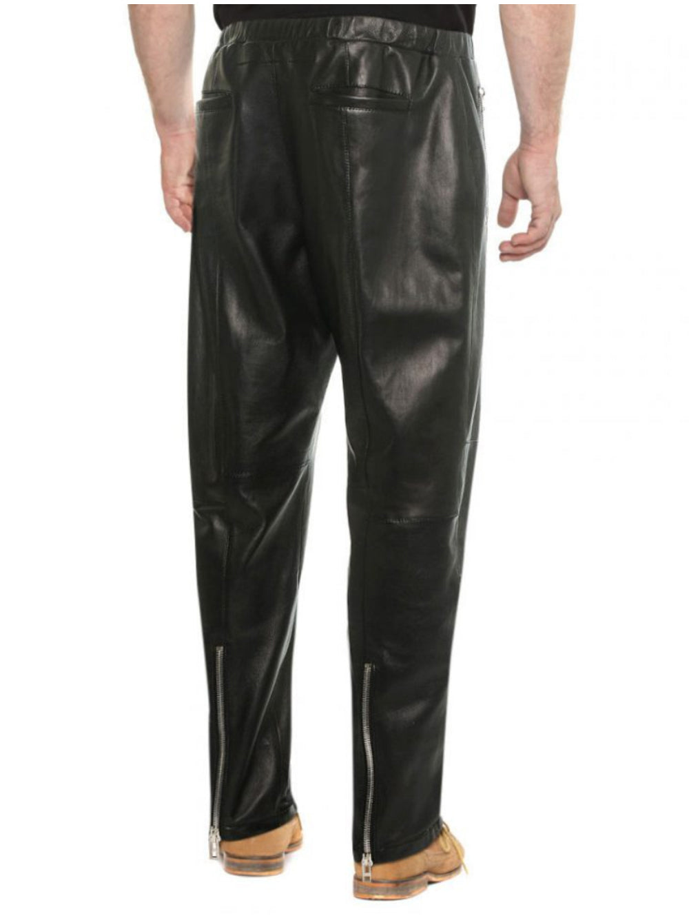 En tant qu'expert produit, je vous présente ce pantalon de jogging zippé en cuir véritable pour homme. Fabriqué en cuir véritable, ce pantalon allie durabilité et style. Grâce à sa fermeture zippée à la cheville, vous pouvez facilement ajuster la longueur pour un ajustement parfait. Profitez d'un confort et d'une polyvalence ultimes avec ce pantalon en cuir.