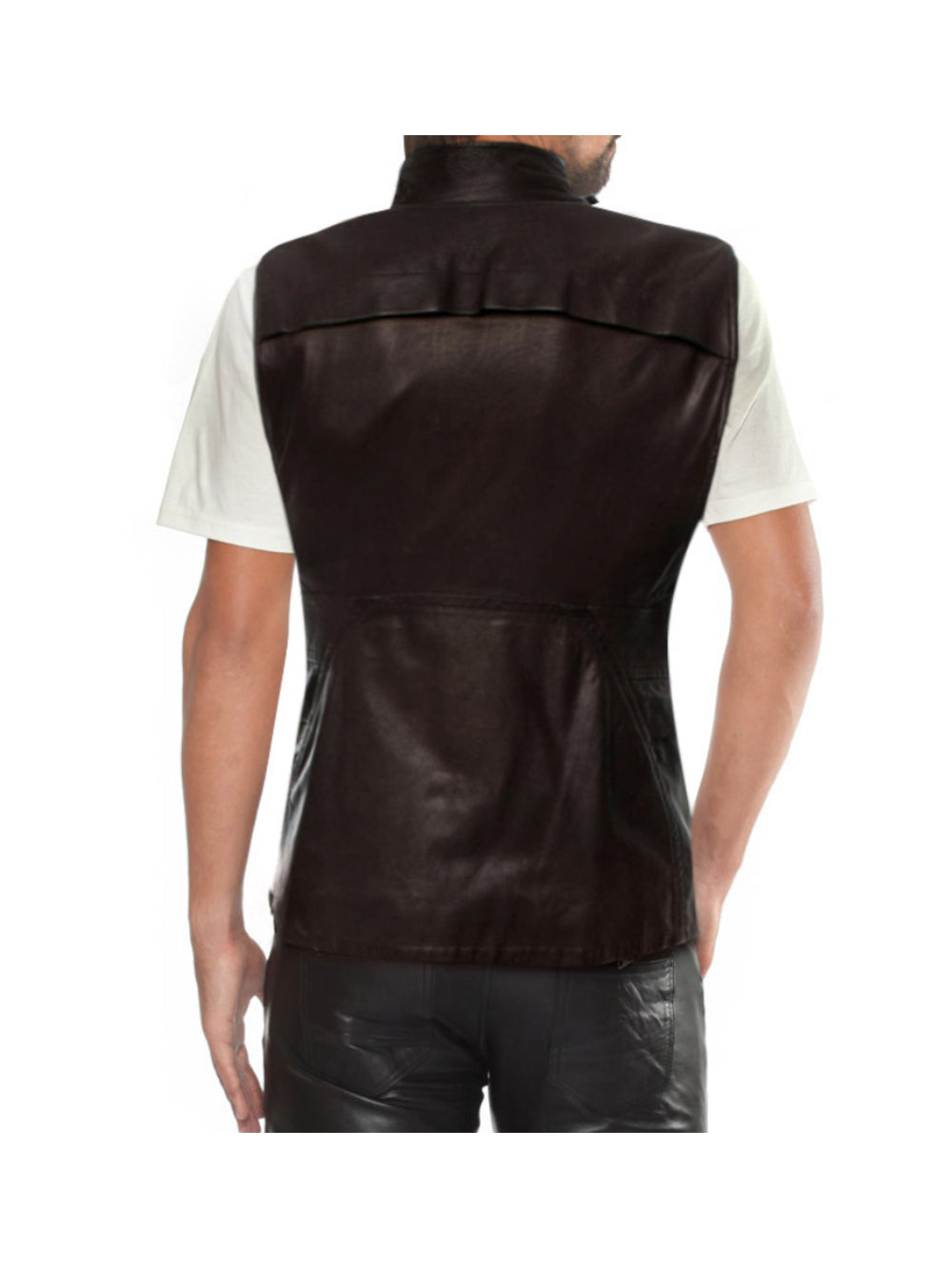Gilet de moto en cuir véritable avec fermeture éclair asymétrique pour homme
