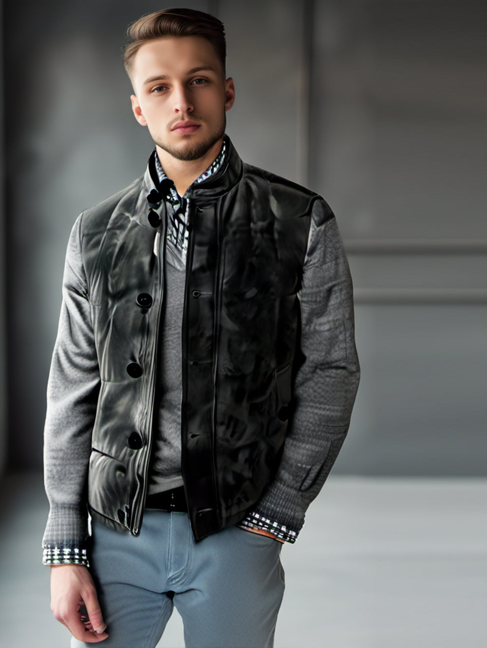 Profitez d'une chaleur luxueuse et d'un style élégant avec notre gilet matelassé en cuir véritable et daim gris pour homme. Fabriqué à partir de matériaux haut de gamme, ce gilet est doté d'un col montant pour une protection accrue contre le froid. Son design matelassé ajoute une touche de sophistication, ce qui en fait le complément idéal de toutes vos tenues.