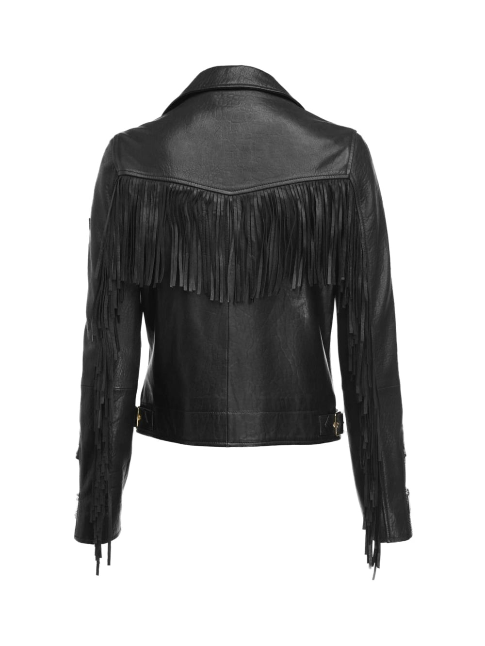 Veste de moto courte en cuir à franges