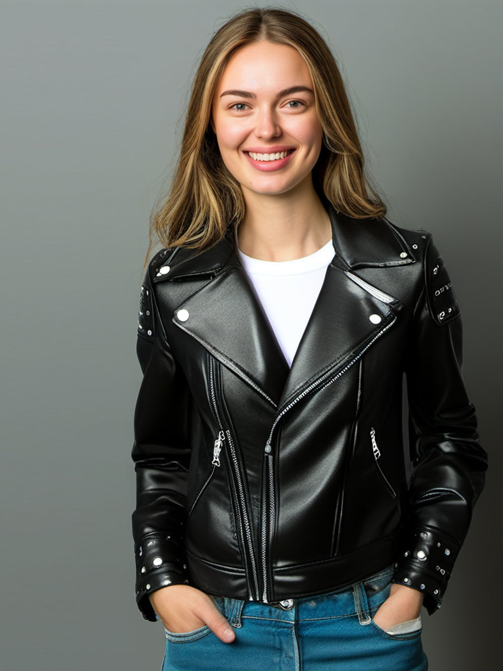 Veste de motard en cuir glamour cloutée