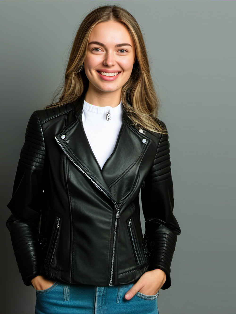 Veste en cuir de luxe à poignets zippés