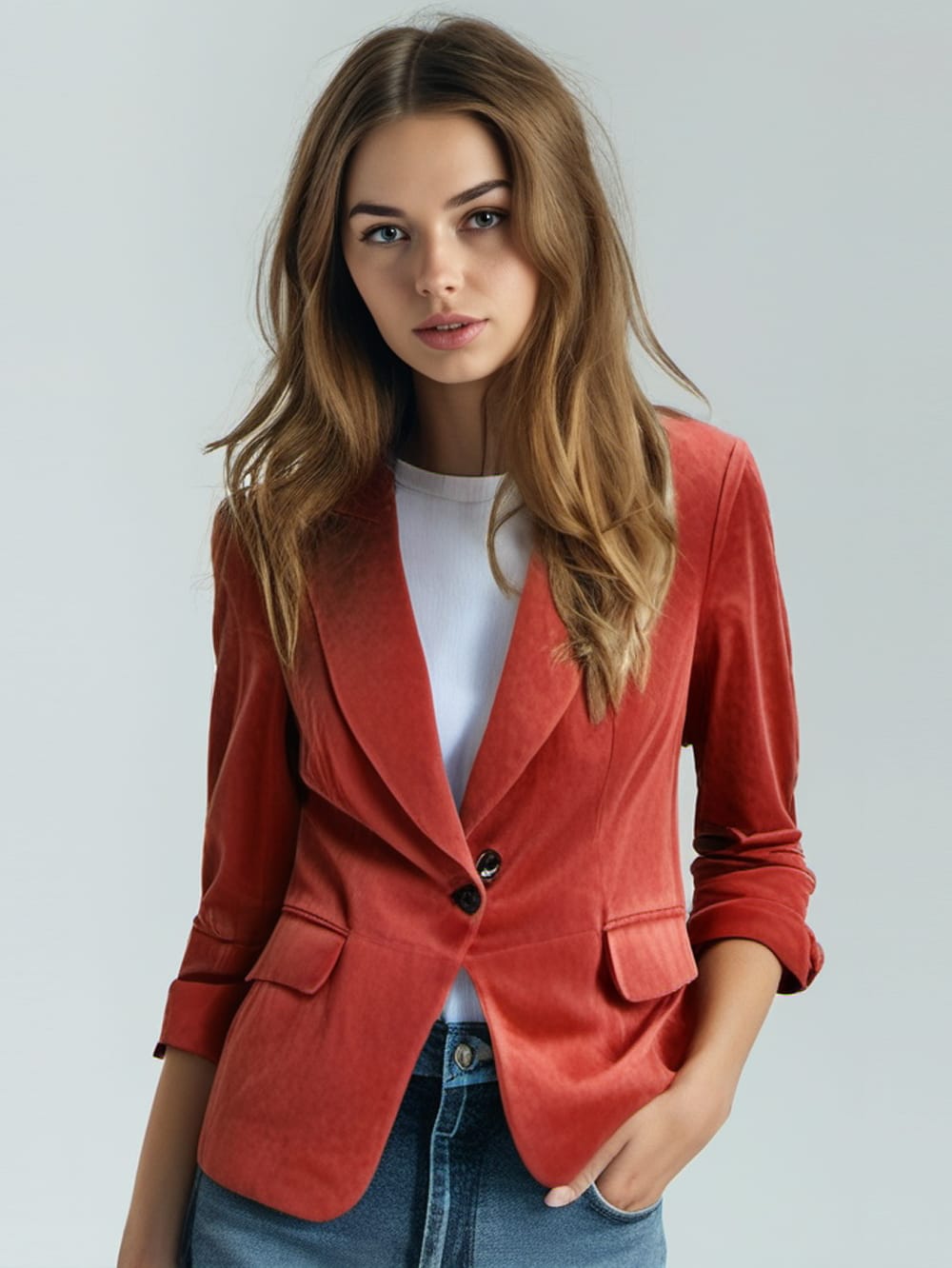 Blazer en cuir suédé Crimson Charm pour femme