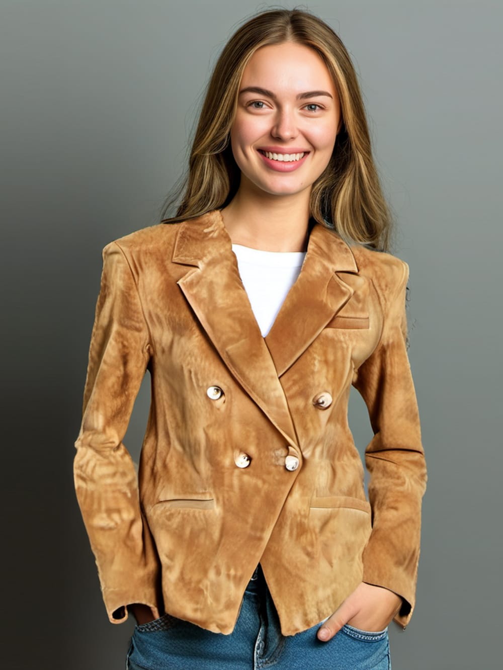 Découvrez la sensation luxueuse de notre blazer en daim Double Luxe pour femme. Fabriqué en daim de haute qualité, ce blazer offre un look doux et sophistiqué. Son design double luxe ajoute une touche d'élégance à toutes vos tenues. Idéal pour celles qui recherchent confort et style.