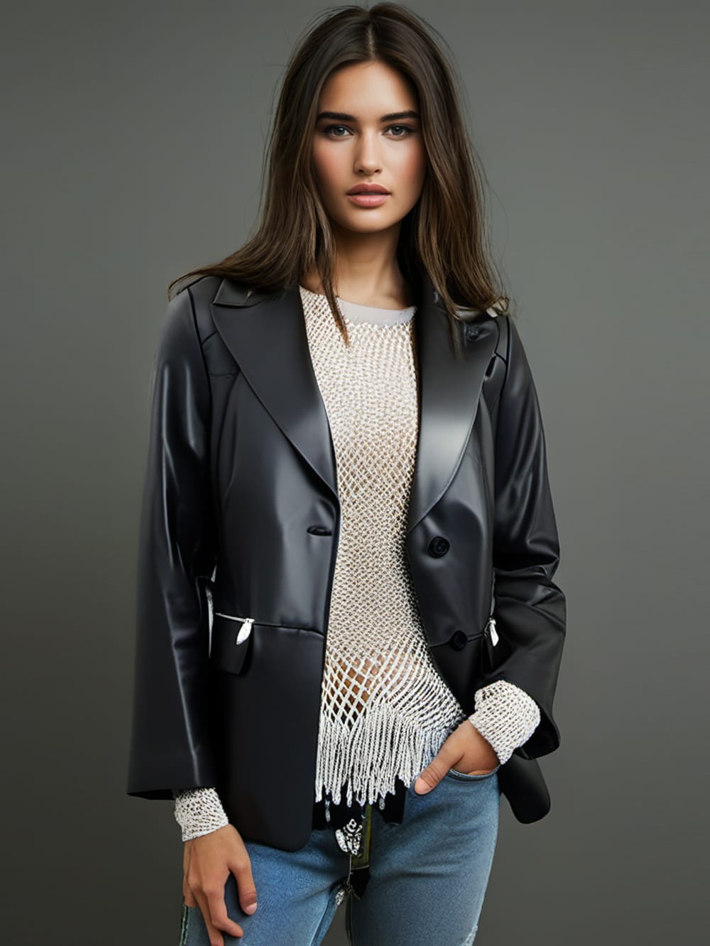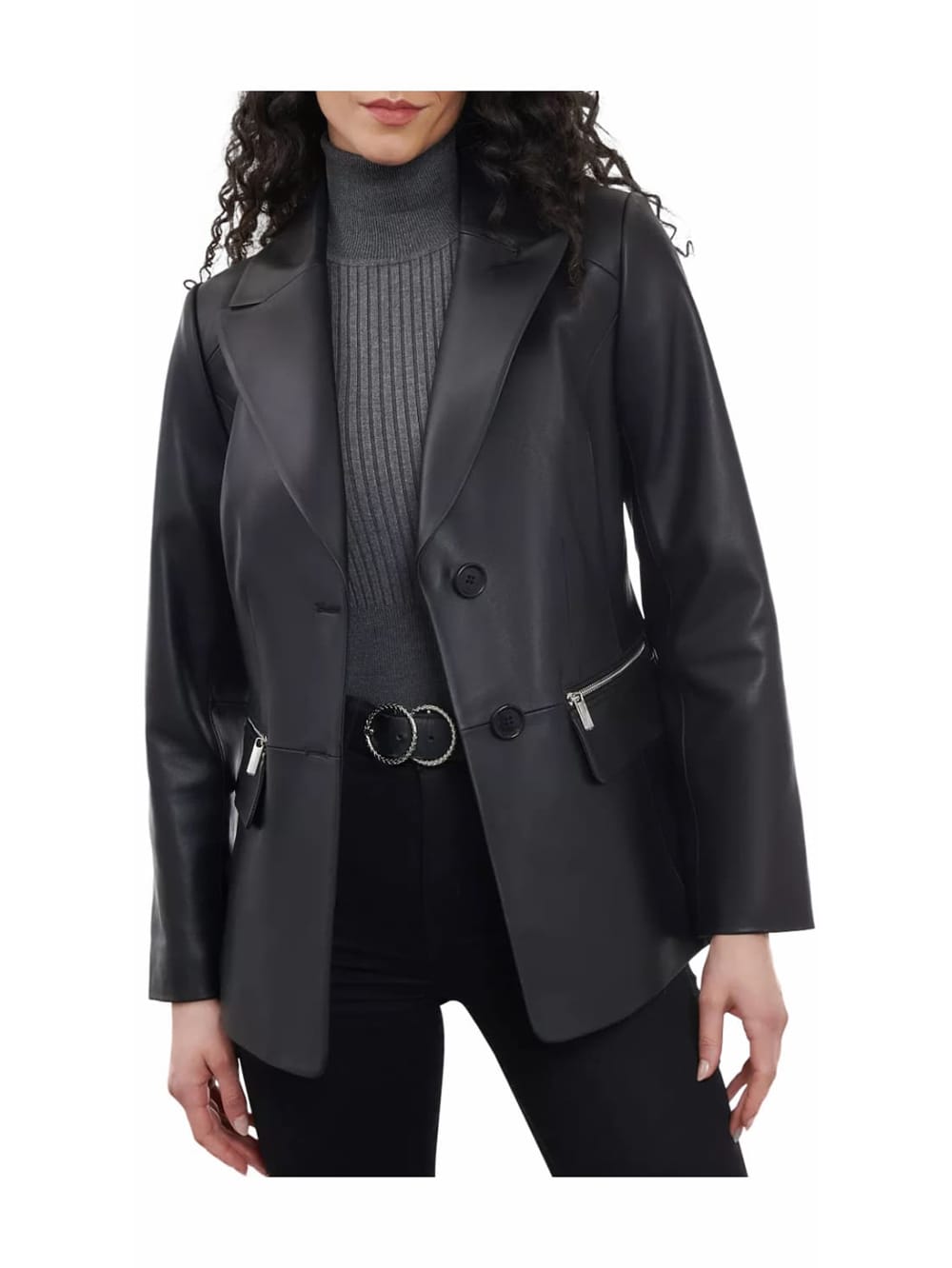 Veste blazer en cuir zippée chic pour femme