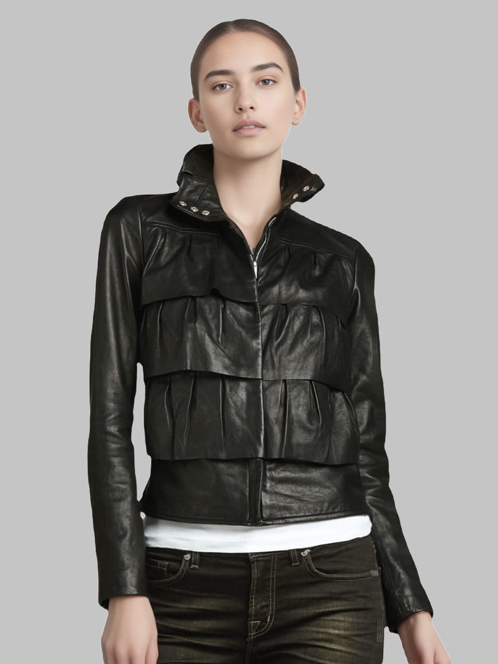 Découvrez le bomber en cuir Layered Elegance pour femme. Ce blouson aviateur arbore un design superposé unique, ajoutant une touche de sophistication à un style classique. Confectionné en cuir de haute qualité, il allie confort et durabilité. Sublimez votre garde-robe et affirmez votre style avec cette pièce élégante.