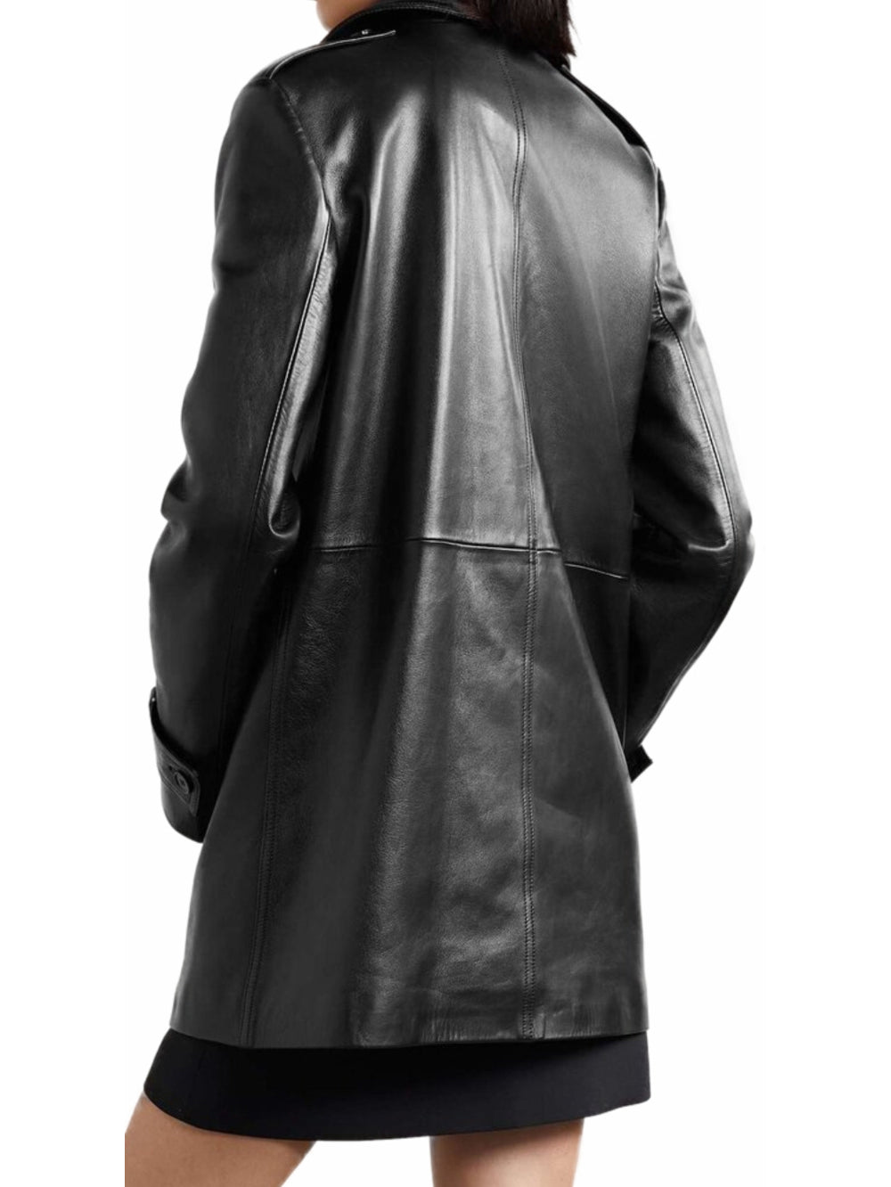Manteau en cuir à épaulettes croisées pour femme