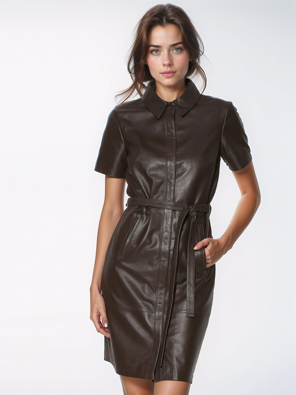 Robe en cuir moka de luxe
