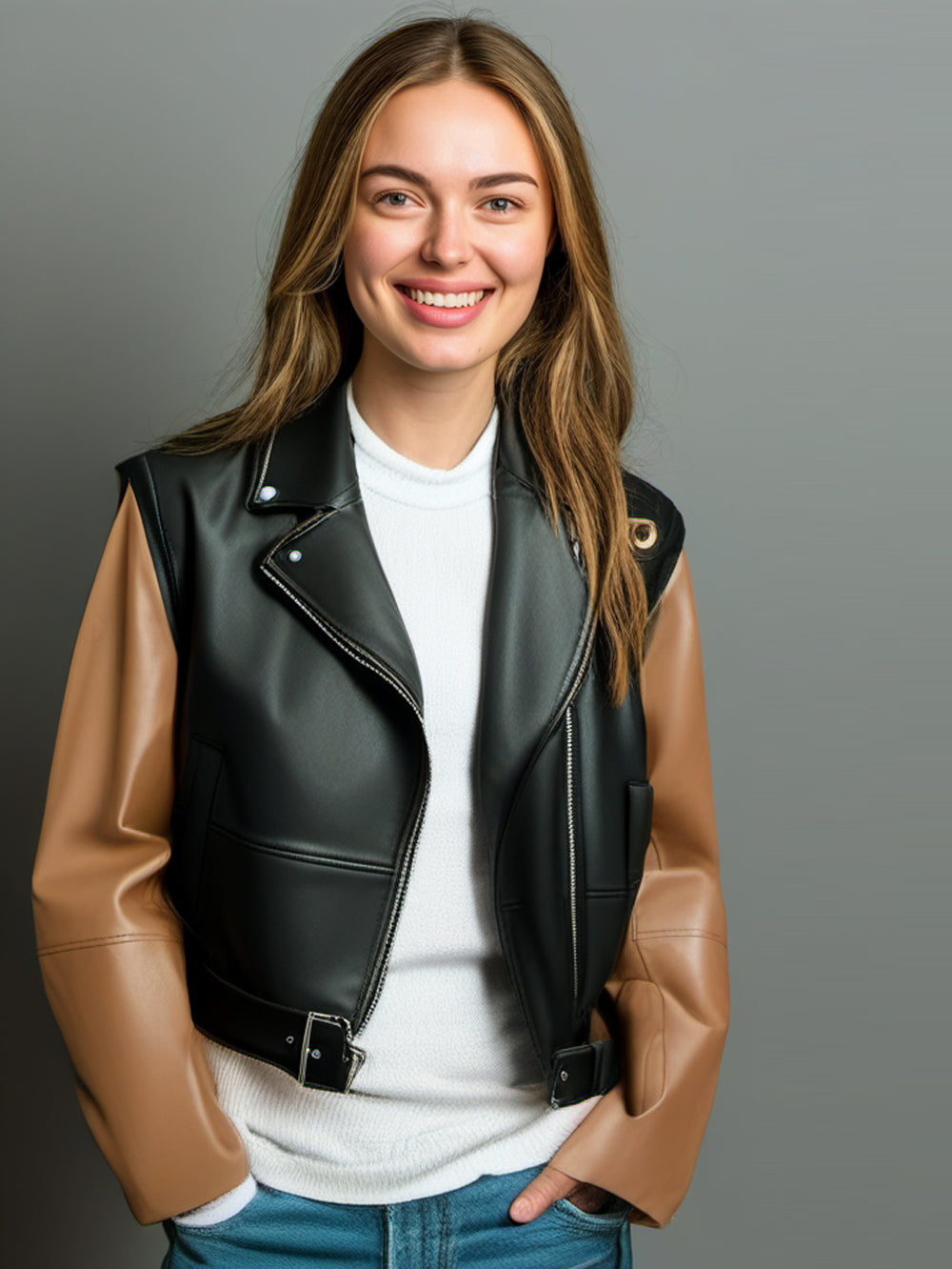 Cette veste motarde luxueuse en cuir d'agneau multicolore arbore un design élégant et raffiné. Confectionnée en cuir d'agneau de première qualité, elle offre un toucher luxueux. Avec sa palette de couleurs multicolores, elle apporte une touche de sophistication à toutes vos tenues. Idéale pour ajouter une touche d'originalité et de style à votre garde-robe, cette veste est un incontournable pour les fashionistas.
