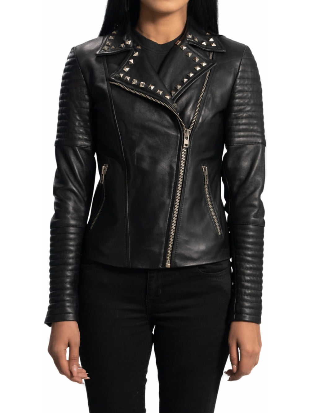 Veste en cuir glamour cloutée