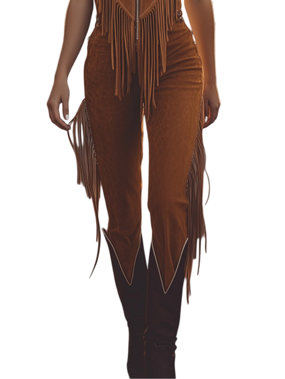 Rehaussez votre style avec la combinaison en cuir et daim Celestial Reign. Confectionnée en daim et cuir de première qualité, cette combinaison est dotée d'une fermeture zippée pour un look élégant et moderne. Avec son design polyvalent et sa coupe confortable, elle complètera parfaitement votre garde-robe.