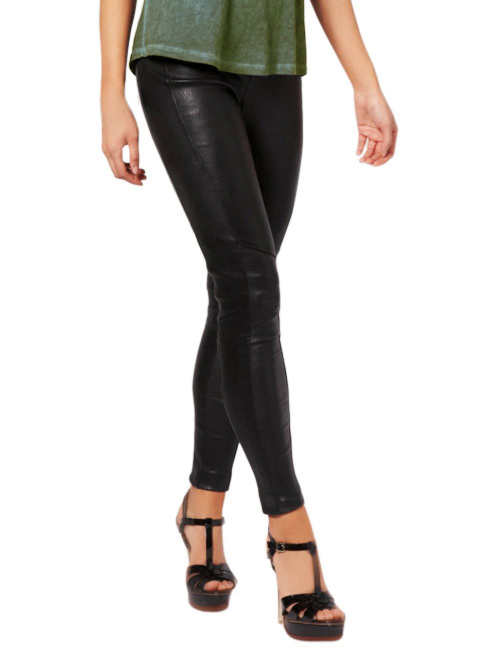 Pantalon en cuir moulant à la cheville avec fermeture éclair
