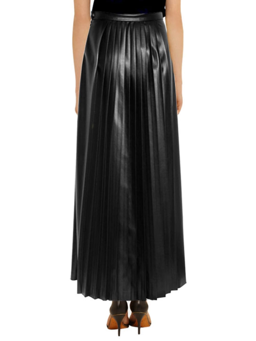 Conçue avec expertise pour allier style et confort, notre jupe longue plissée en cuir est un incontournable de votre garde-robe. Son design plissé apporte une touche d'élégance, tandis que sa coupe longue offre une couverture complète pour un look raffiné. Confectionnée en cuir de haute qualité, cette jupe vous accompagnera pendant des années.