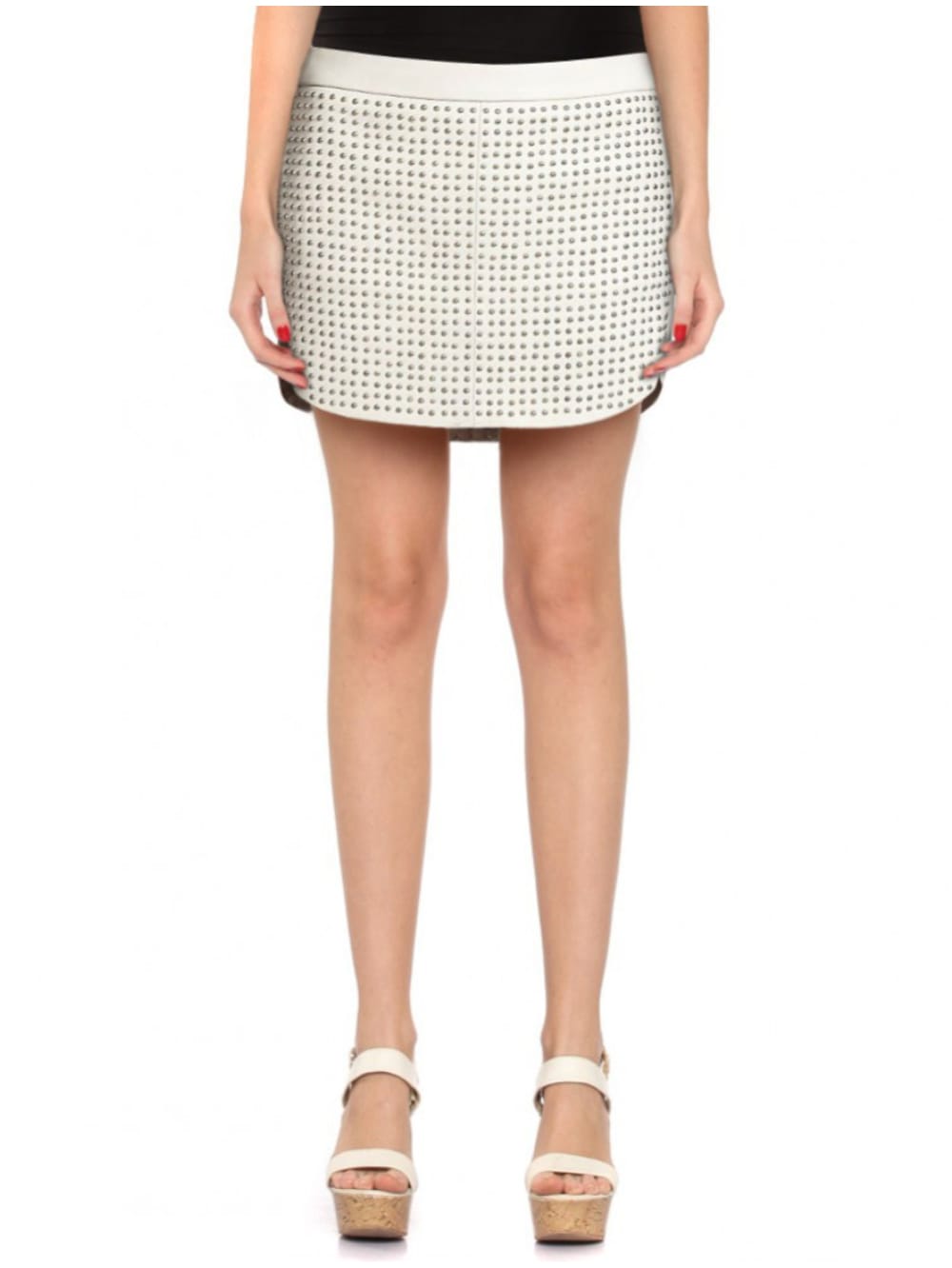 Mini-jupe en cuir cloutée avec fermetures éclair au dos