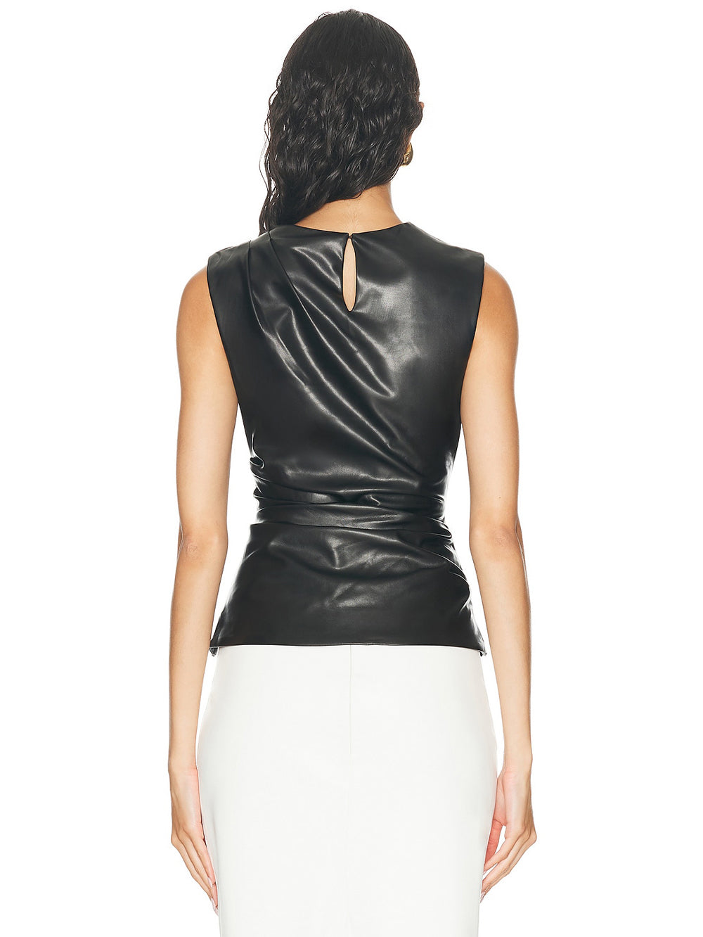 Confectionné avec expertise, le haut en cuir drapé Wynter Flow offre un look élégant et sophistiqué. Confectionné en cuir de haute qualité, il arbore un drapé flatteur, à la fois confortable et élégant. Parfait en toute occasion, ce haut est un incontournable de toute garde-robe avant-gardiste.